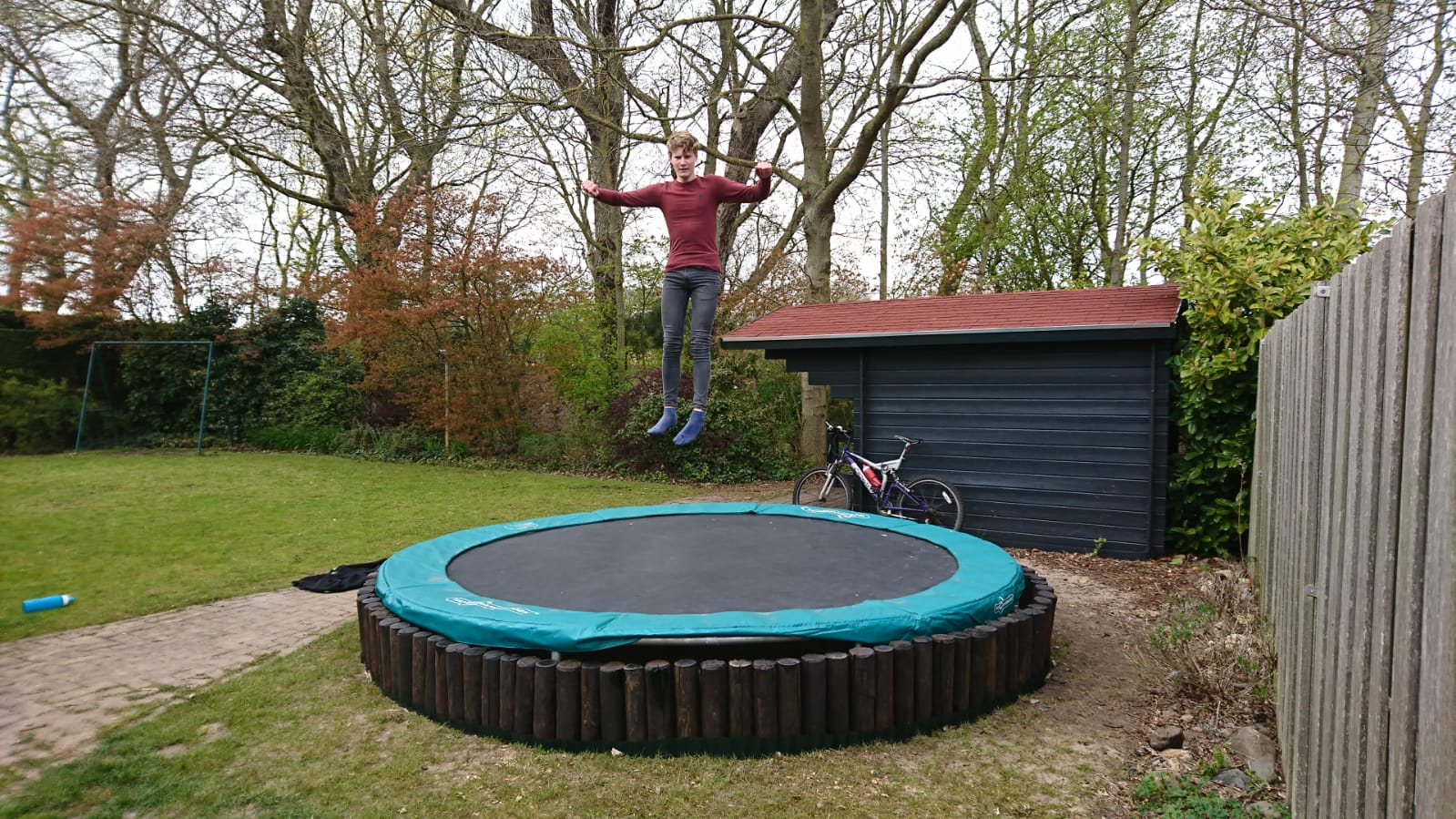 - Een grote ingegraven trampoline.